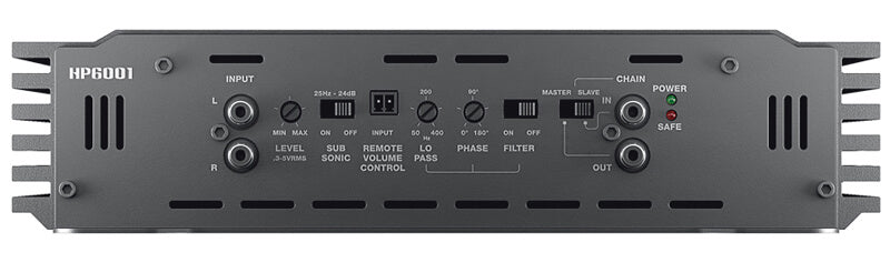 HP 6001 is the most powerful spl car audio amplifier within the SPL Show line. The overbuilt power supply stage and the D Class output stage featuring 12 Mosfets provide the ability to deliver up to 6000W power.