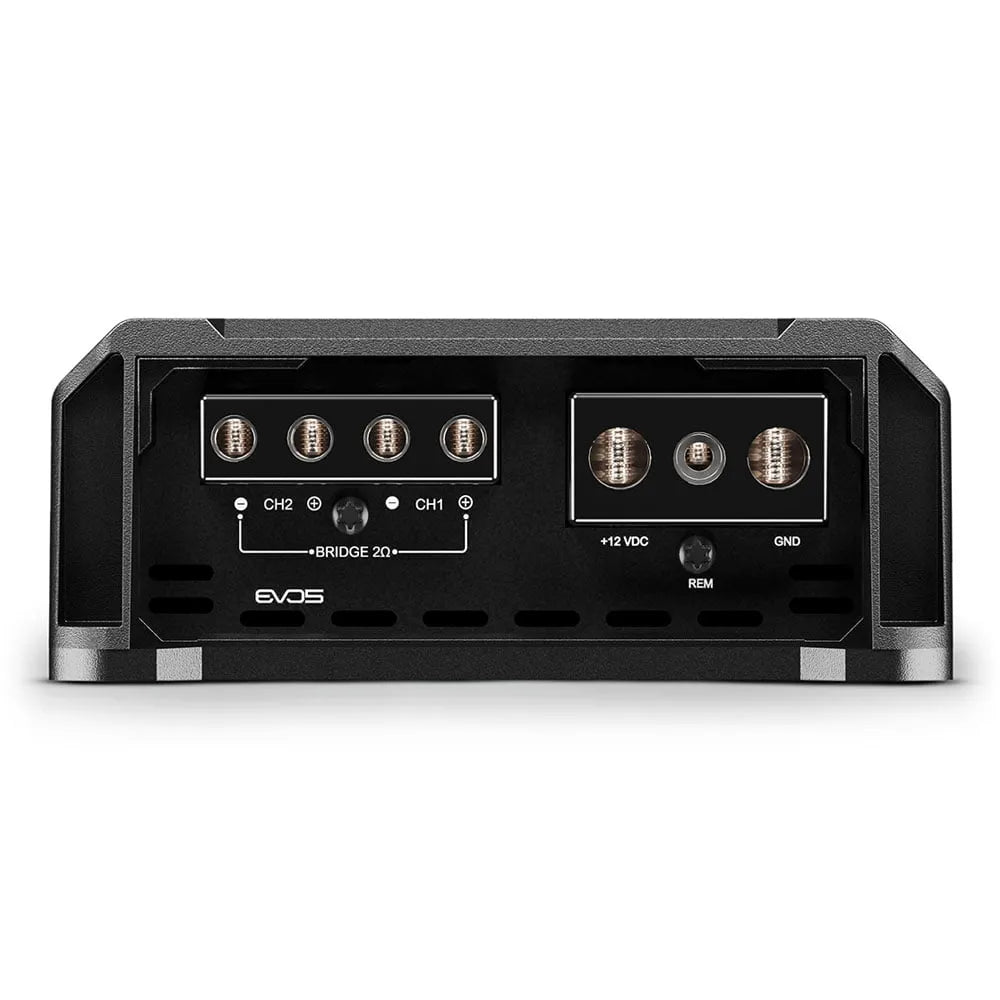 The 1200.2 EVO 5 is a compact, modern amplifier that delivers 1200W RMS of power distributed over 2 channels.