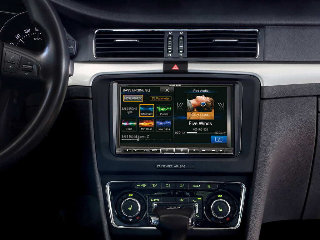 Cleanly installing an 8” screen into a regular dashboard can be a challenge, so Alpine provides an increasing number of installation kits, including everything from mechanical parts to adapters and interfaces for Steering Wheel Remote Control and Vehicle Display (if available). Installation kits are available for various vehicles like many Volkswagen, Seat and Skoda, Mercedes A Class (W169), B Class (T245), Vito and Viano, Kia Sportage, Mitsubishi ASX, Nissan Qashqai. More kits are under preparation. For more detailed information please ask your dealer.