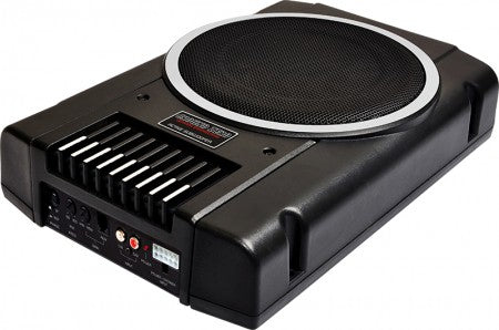 8″ flat active subwoofer with plastic injection enclosure and integrated amplifier with high level input