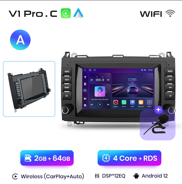 1, Android 12 + Built-in Wireless Carplay/ Android Auto ;